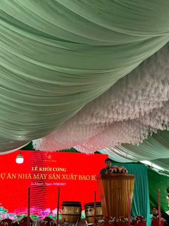 Dự án sản xuất bao bì được triển khai trên diện tích 2,48ha, với tổng vốn đầu tư 70 tỷ đồng, dự kiến khi đi vào hoạt động sẽ tạo việc làm cho khoảng 85 lao động địa phương, góp phần thúc đẩy phát triển công nghiệp – tiểu thủ công nghiệp trên địa bàn.